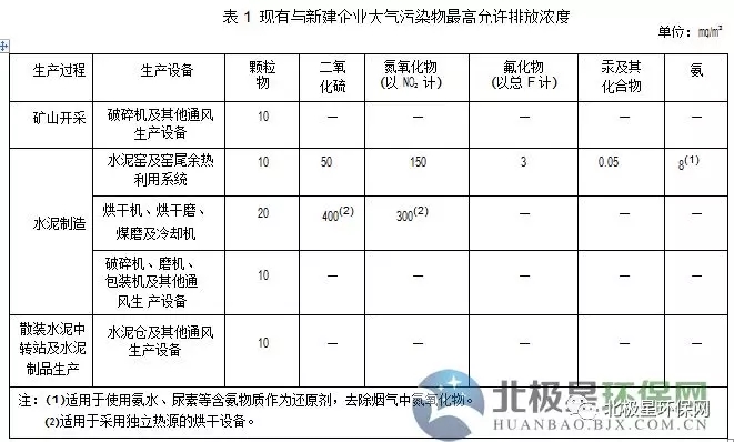 1.2 自本標準實施之日起,新建企業執行表1規定的大氣污染物最高允許排放濃度。